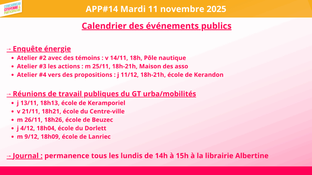 - Calendrier des prochaines APP + autres dates importantes du collectif