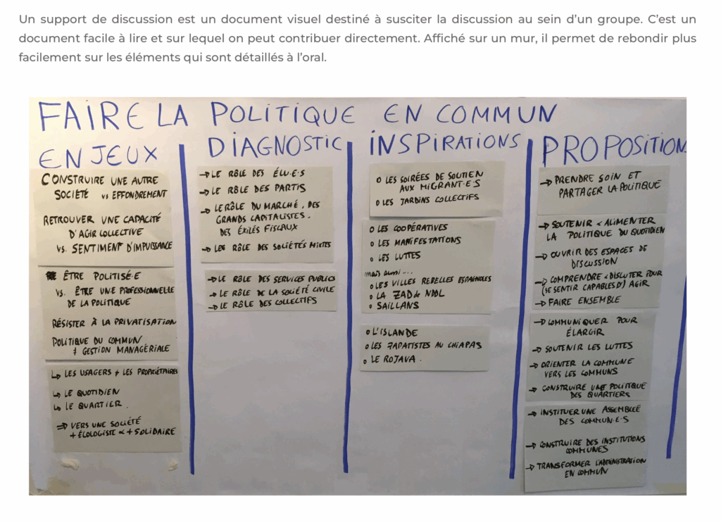 - Les supports sont mis à jour au fur et a mesure : processus. Le but est de voir comment ça évolue. Mais on part de qq avec un angle politique particulier